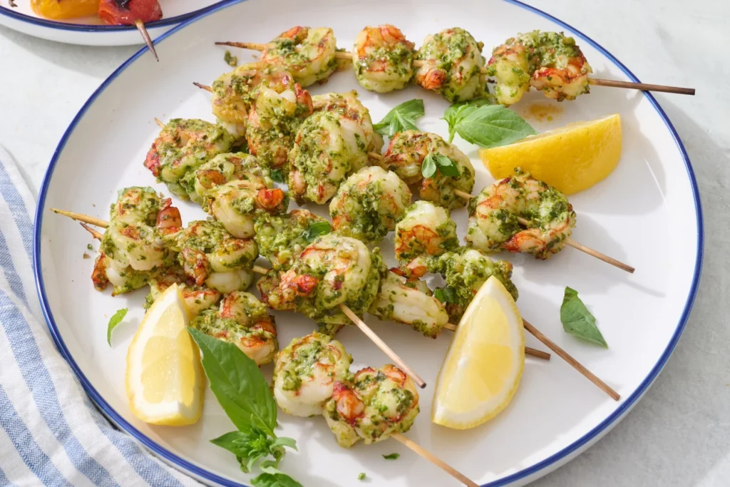 3. Shrimp Skewers with Mint Pesto